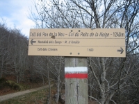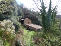 Just abans de la cova de la verge, prenem el corriol que va de pujada. Arribem al Coll dels Pous i passem a l’altre costat d’una vella tanca per entrar a França pel Vallespir. Immediatament per l’esquerra seguim el corriol de pujada, dins d’una magnífica fageda. Arribem al Coll del roc del Pou de Neu. Aquí esmorzem i tot seguit agafem el camí que baixa per la cara O i ens portarà al Cortal de la Garriga. El camí passa per boscos de castanyers. En arribar a La Garriga, ens trobem amb un mas antic amb el teulat en bon estat però però força enrunat per dins. De totes maneres podria servir de refugi en cas de mal temps. Podem admirar els arcs de pedra que hi havia a l’interior. Aquí trobem una bifurcació de camins. Cap a la dreta baixarem en direcció a Montalbà i cap a l’esquerra anirem al Molí d’en Serrador. El primer camí és una forta baixada que després haurem de tornar a pujar. L’altre és més planer. Nosaltres, no escoltant gaire les explicacions d’en Fíguls, veient que les condicions del temps ens ho permeten i trobant-nos forts i fortes decidim fer la ruta llarga i anar a Montalbà i després pujar cap el Molí. Al final del dia crec que algú es va penedir d’aquesta decisió.